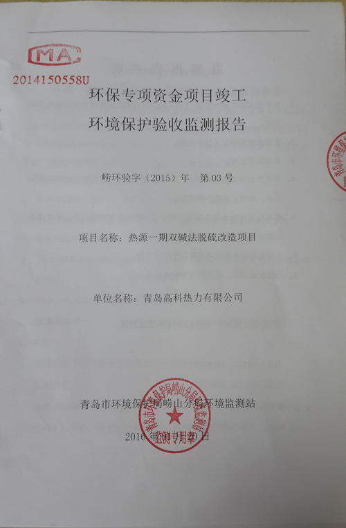 青島高科熱力有限公司熱源二期1#脫硫塔超潔凈排放改造 建設(shè)項(xiàng)目環(huán)境影響報(bào)批前公示